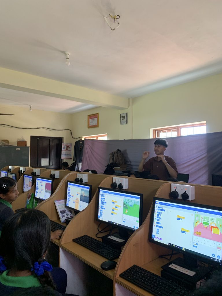 On September 22, 2024, we hosted a Scratch programming workshop for Class 6 and 7 students at Ishaneshwor Secondary School, where they learned to create animations and simple games using visual coding blocks. The workshop provided hands-on experience with basic coding concepts, allowing students to build their own projects.