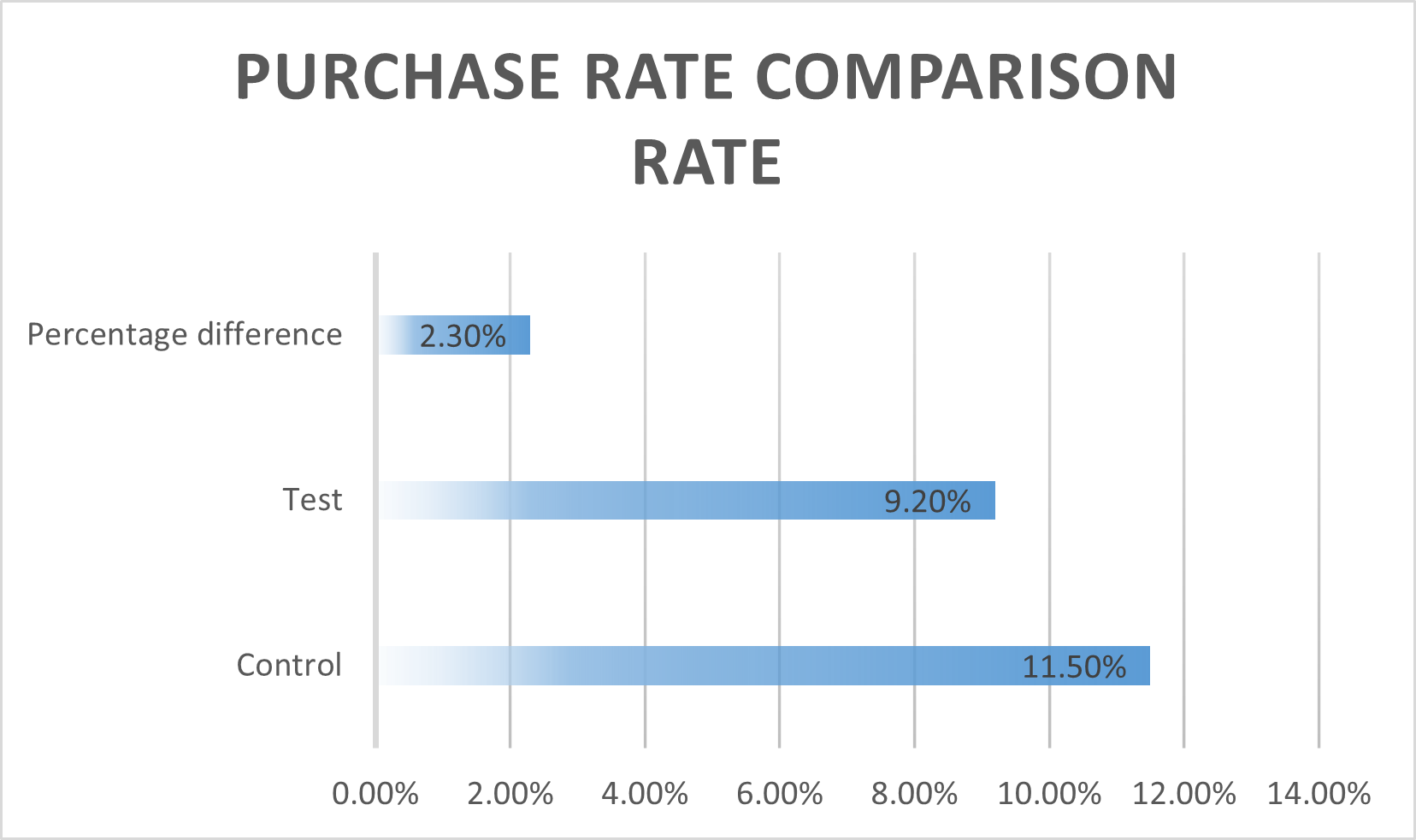 While the test campaign achieved a higher CTR, the Add to Cart Rate and  Purchase Rate data presents a different picture. The Control campaign boasts a higher Add to Cart Rate(27.8%) compared to the Test campaign(15.8%), resulting in a 12% difference. Similarly, the control campaign exhibits a higher purchase rate (11.5%) compared to the Test campaign(9.2%) with a 2.30% difference.